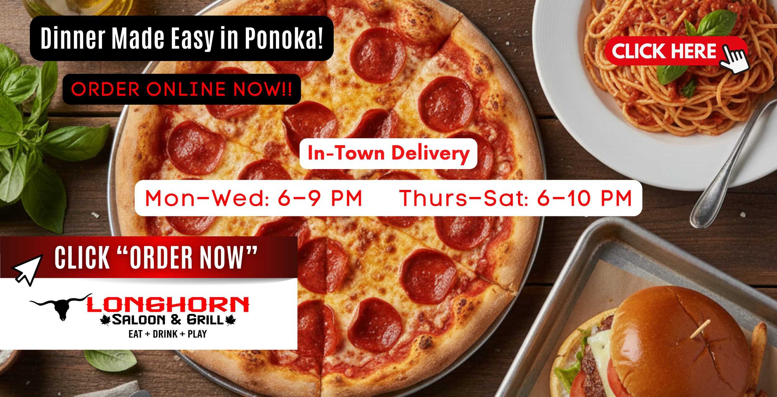 *NEW* Order Online Now ORDER NOW Delivery Now Available Call 403.783.5566 or click to order online ๐ EAT + DRINK + PLAY ๐ In-Town Delivery Orders under $75: $6 Orders over $75: FREE ๐ MonโWed: 6โ9 PM ๐ ThursโSat: 6โ10 PM